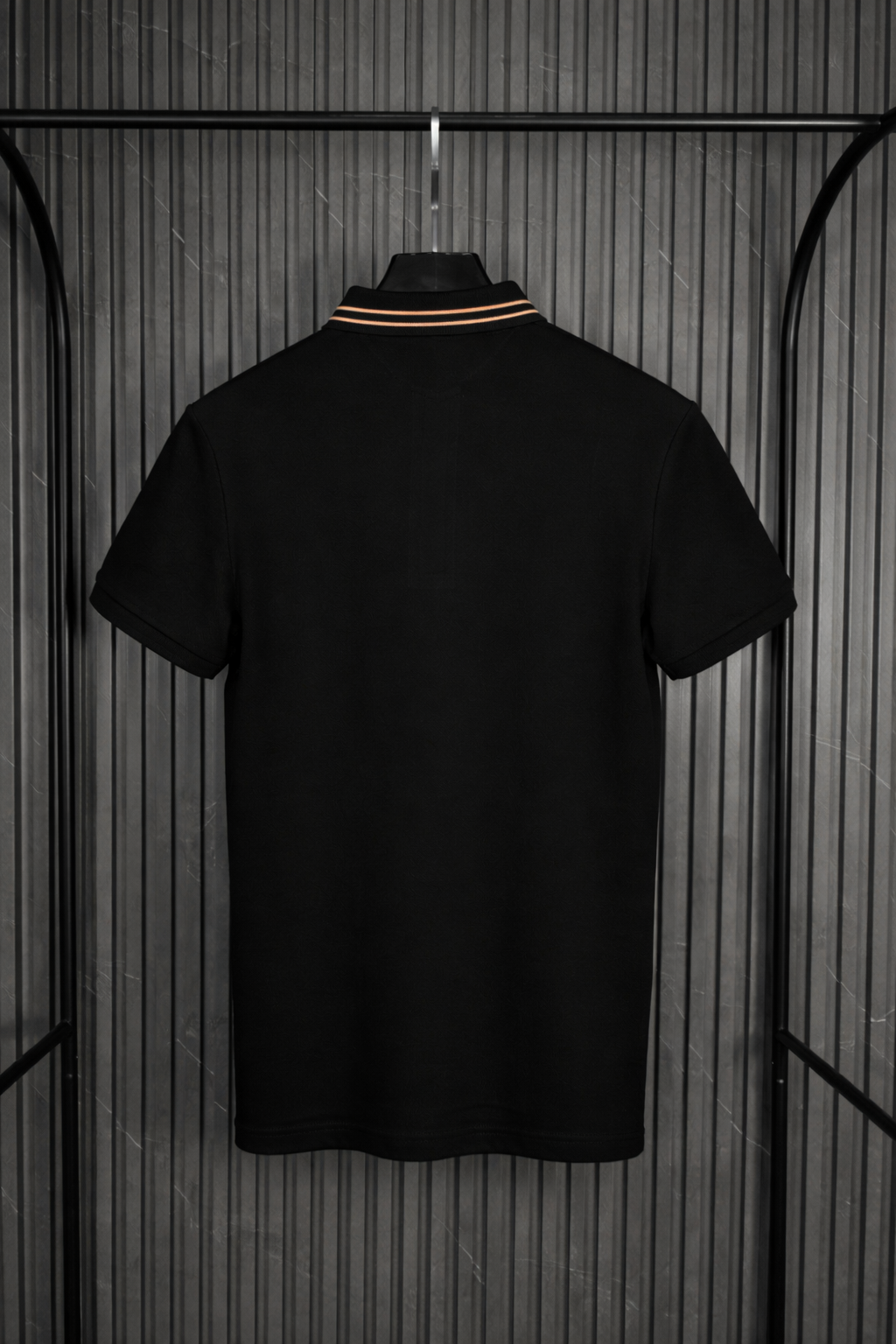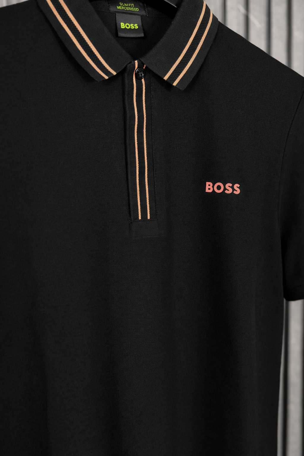 ⚫ BOSS Contrast Stripe Collar Polo Shirt Black – Playera Polo Premium Deportivo