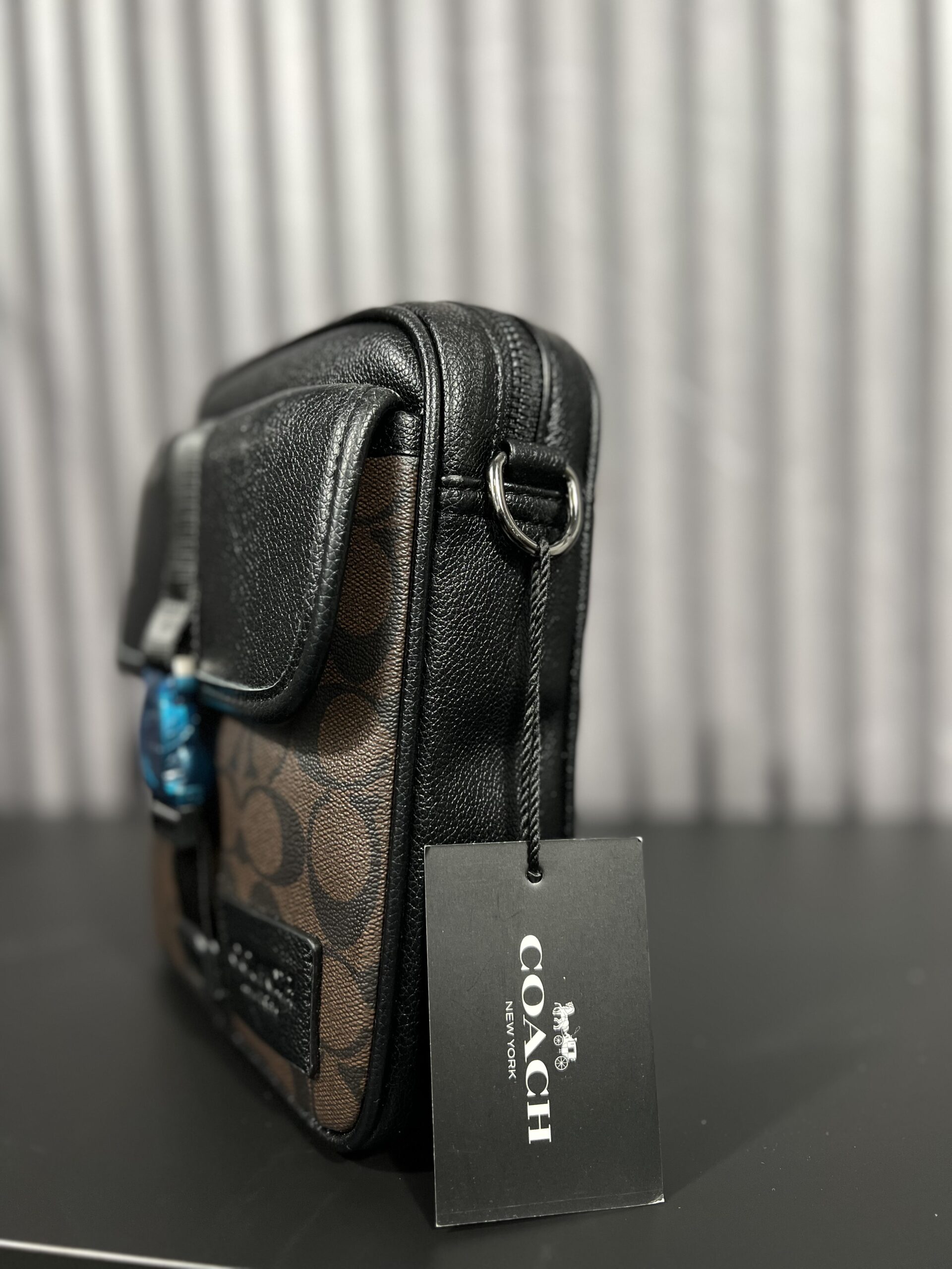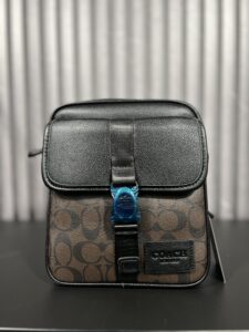 El diseño de esta bandolera Coach crossbody destaca por su estética moderna inspirada en el estilo urbano contemporáneo, combinando el clásico monograma de la marca con detalles funcionales que refuerzan su identidad visual.
