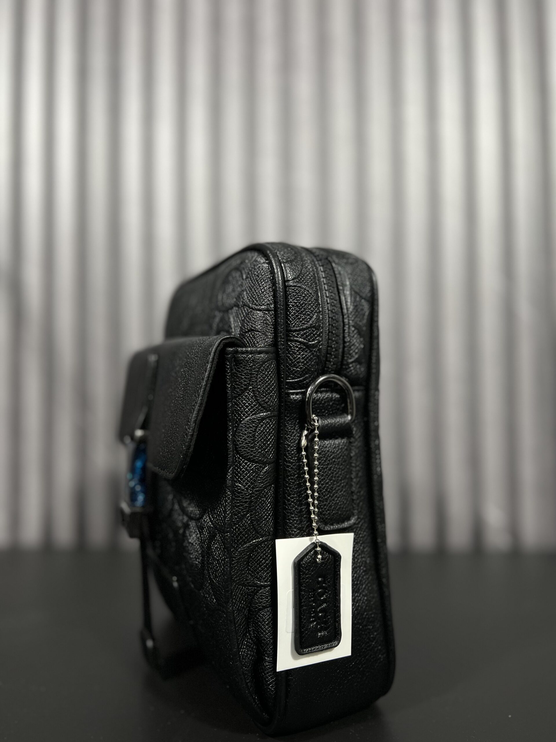 Esta bandolera Coach negra Signature es ideal para quienes buscan un accesorio moderno dentro de la moda masculina.